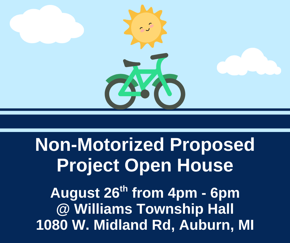 The Midland Area Transportation Study (MATS), in partnership with the City of Midland and the Bay County Road Commission (BCRC), invites community members to learn more about a proposed non-motorized project in the Midland area. An open house will take place on Tuesday, August 26 from 4 – 6 p.m. at Williams Township Hall, located at 1080 W. Midland Rd. in Auburn.